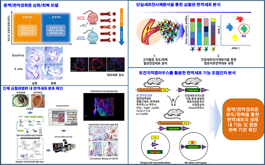 - 사람의 정상 심혈관조직과 염증성 심혈관조직에서 면역세포들의 변화양상 분석 및 유전자적중마우스를 이용한 기능 이해